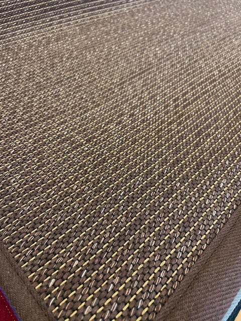 Lilli mattoon antaa elävyyttä yksiväristen kuteiden keskellä meleerattu kude.